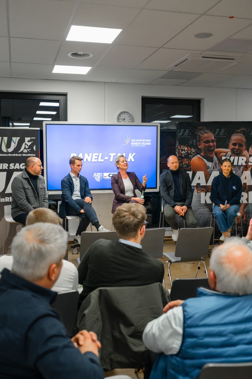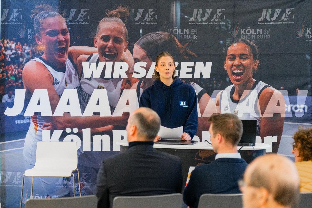 Im anschließenden Panel diskutierten die JU-Kreisvorsitzende Antonela Sculija, die Oberbürgermeisterin der Stadt Gelsenkirchen Andrea Henze, der Landesvorsitzende der Jungen Union Nordrhein-Westfalen Kevin Gniosdorz, der Projektleiter der Olympia-Kampagne bei der Staatskanzlei des Landes NRW Niklas Börger sowie Dominik Durben von Schalke 04. Im Mittelpunkt stand dabei die Vorstellung der laufenden Kampagne sowie des Zeitplans, der von einem möglichen Ratsbürgerentscheid bis hin zur finalen Entscheidung über eine Bewerbung reicht.