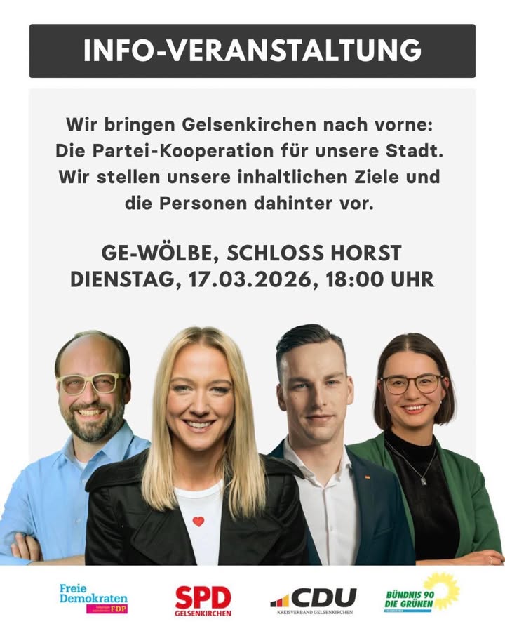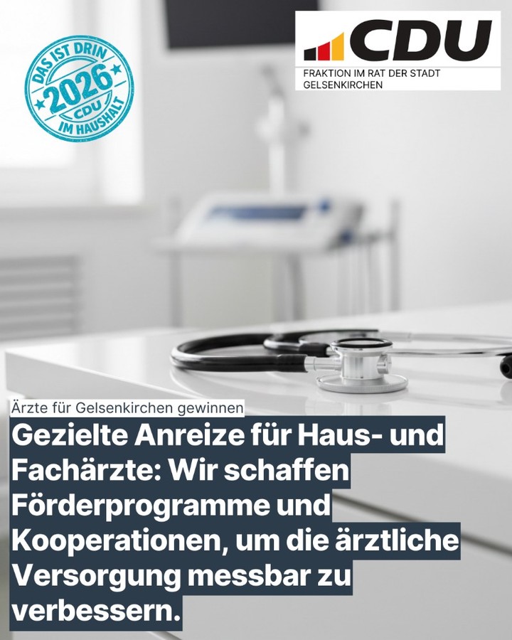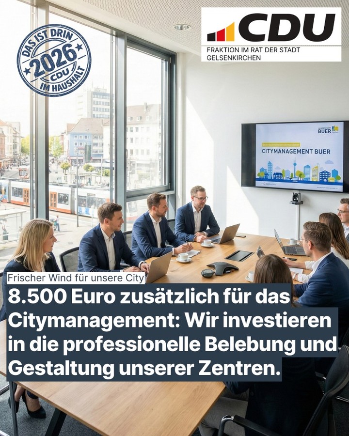 im Namen der CDU Gelsenkirchen freue ich mich über Ihr Interesse an unserer Arbeit. Die CDU Gelsenkirchen steht seit 80 Jahren für Verantwortung, Verlässlichkeit und den Einsatz für eine starke, lebenswerte Stadt. Gemeinsam mit unseren Mitgliedern setzen wir uns für die Anliegen der Bürgerinnen und Bürger ein und gestalten die Zukunft Gelsenkirchens aktiv mit.